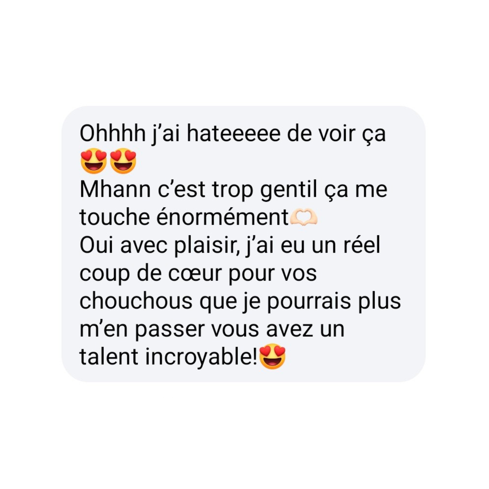 Et parce que la qualité est ma priorité, chaque chouchou est pensé pour durer longtemps, en respectant votre santé et celle de l’environnement.