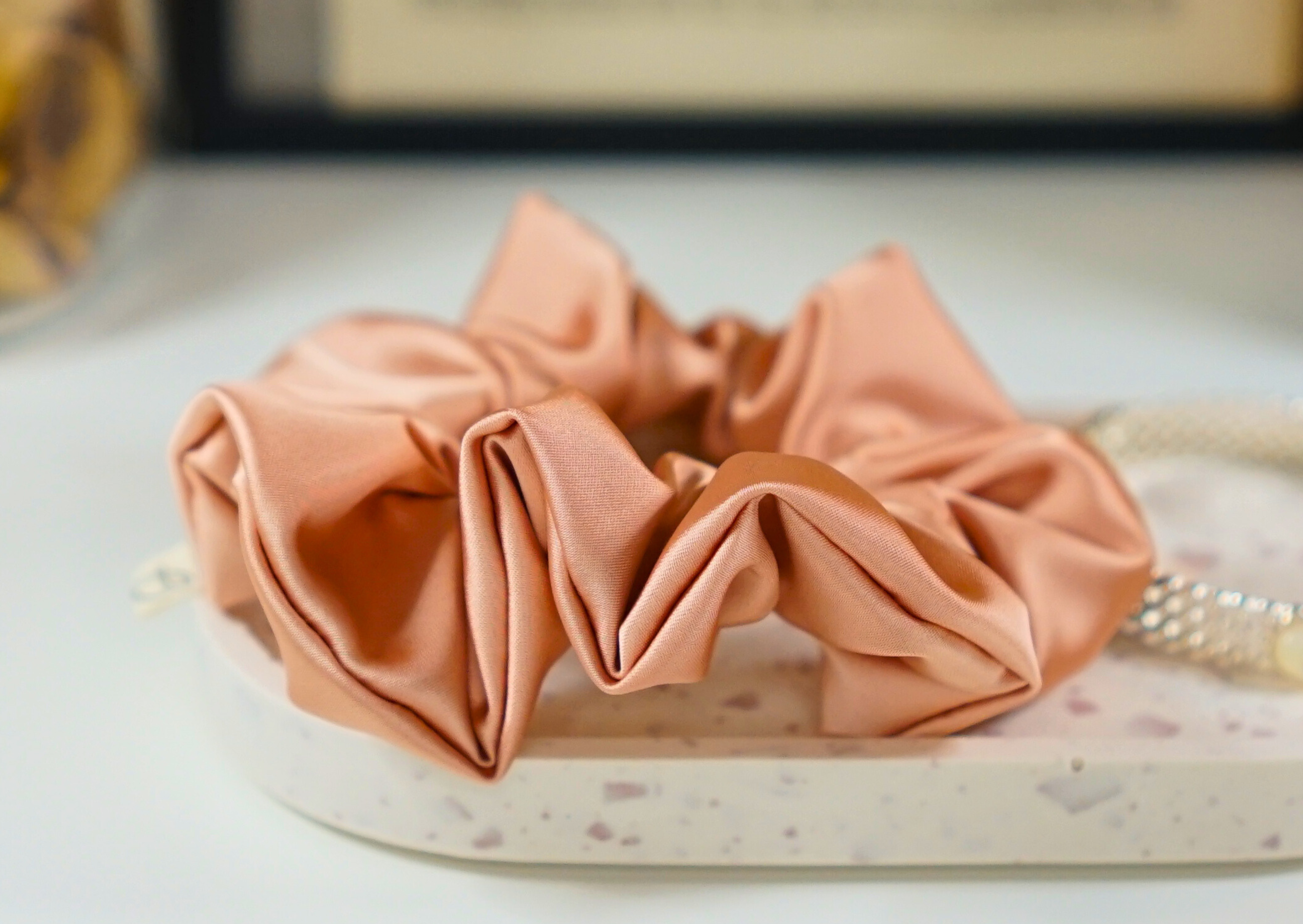 Les chouchous sont faits main, en satin duchesse, pour s’adapter parfaitement à tous les types de cheveux.