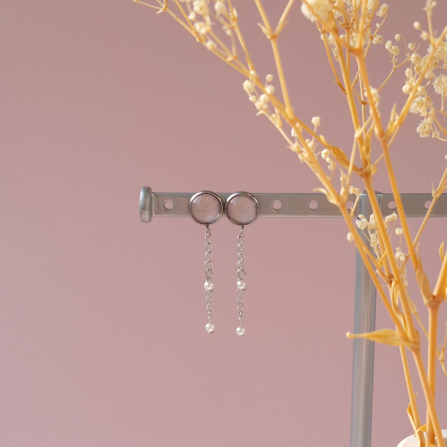 Ces Boucles d’oreilles allient douceur et élégance grâce à leur cabochon en satin, délicatement recouvert d’une bille en verre qui capte la lumière avec subtilité.